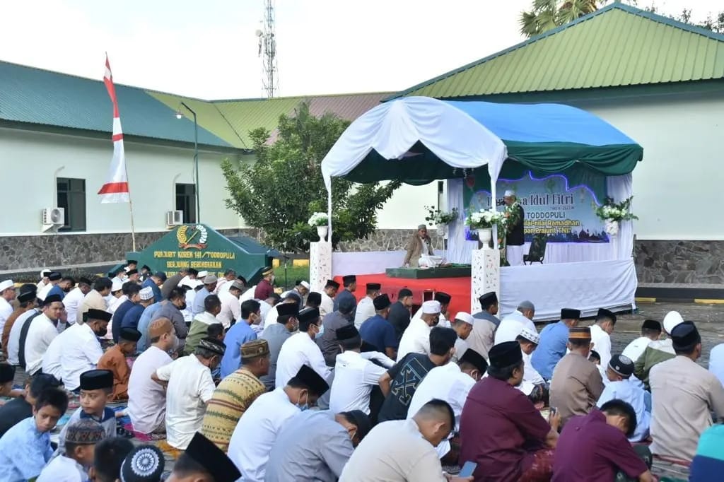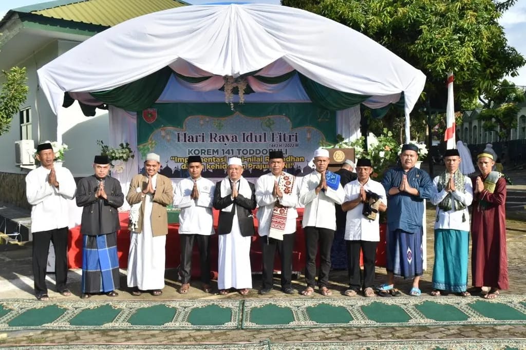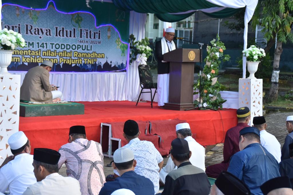 Kapenrem 141/Tp. Mayor Arm Arfan Towasi mengatakan, “Yang bertindak sebagai Imam dalam pelaksanaan sholat Id adalah Pembina Ponpes MDIA Takwa Makassar. Ust Arvian S.Pdi, serta pembacaan Khutba Idul Fitri di bacakan oleh Kepala Mts Al-Ikklas Ujung H.Saharuddin S.Pd.Mpd. “Ucapnya