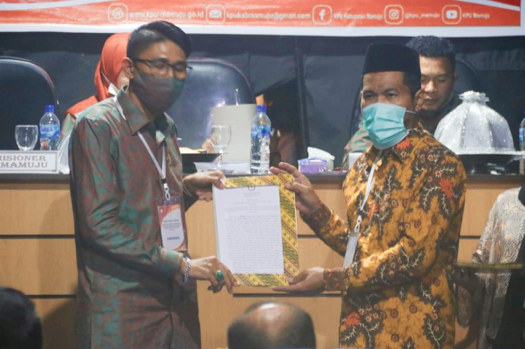 Dalam rapat yang diselenggarakan di halaman KPU Provinsi Sulbar tersebut, dilakukan pembacaan SK bernomor 15/PL.02.7-Kpt/7602/KPU-Kab/II/2021, menyatakan bahwa pasangan Sitti Sutinah Suhardi, SH., MSi. dan Ado Mas’ud, S. Sos(Tina-Ado) sebagai Bupati dan Wakil Bupati Terpilih dengan jumlah total suara sebanyak 76.627 suara.