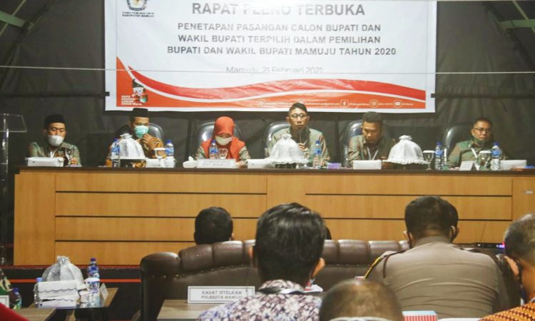 Pasca dibacakannya hasil putusan MK terkait tuntutan pasangan petahana calon Bupati dan Wakil Bupati Mamuju pada 17 Februari lalu, yang menyatakan bahwa tuntutan tersebut ditolak, hari ini, Minggu (21/2/2021), KPU Kabupaten Mamuju menyelenggarakan Rapat Pleno Terbuka Penetapan Bupati dan Wakil Bupati Terpilih.
