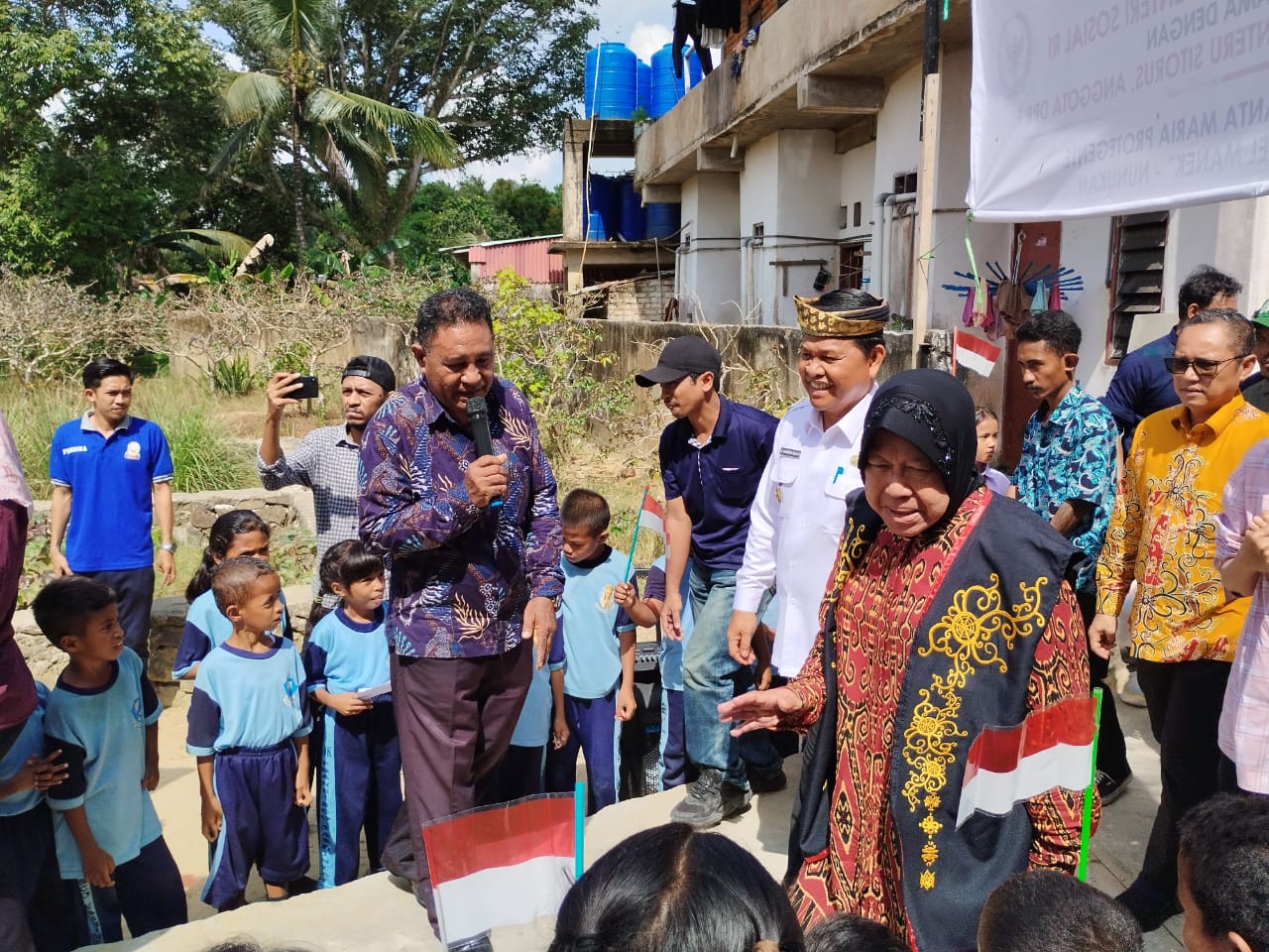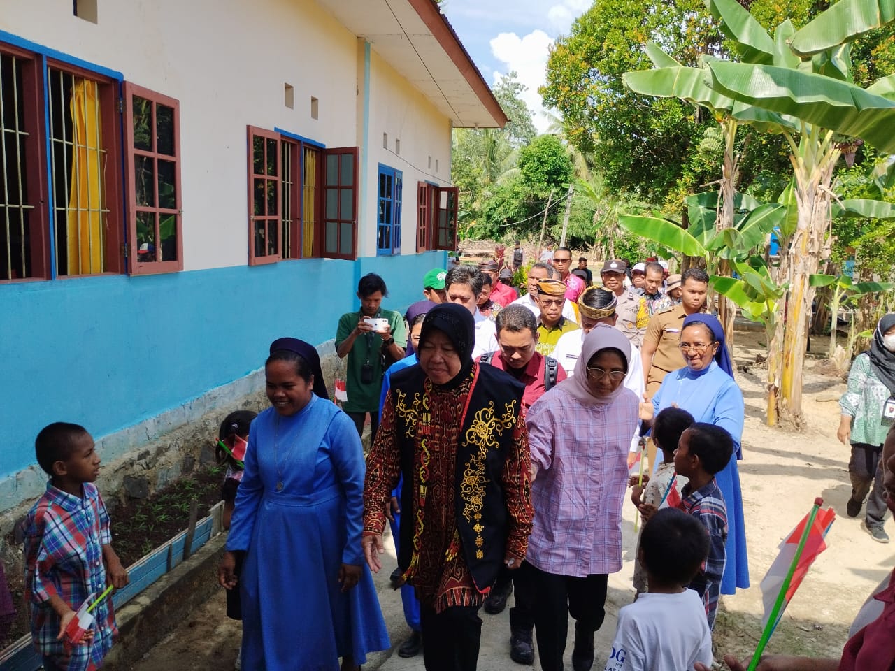NUNUKAN – Bertempat di SD Katolik Fransisco Yashinta Nunukan, Kalimamtan Utara (Kaltara), Menteri Sosial (Mensos) Republik Indonesia (RI), Tri Rismaharani berikan bantuan untuk siswa/siswi jenjang Sekolah Dasar, Jumat (3/11/2023).