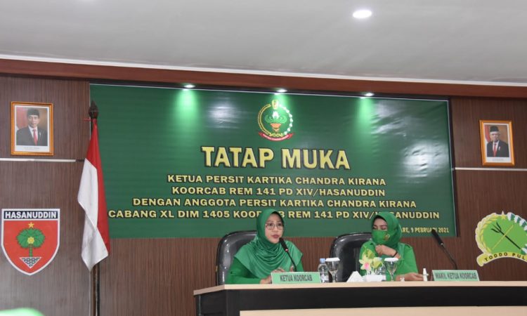 Ibu Ketua Persit KCK Koorcab Rem 141 PD XIV/Hsn dalam tatap muka bersama anggota Persit KCK Cabang XL Dim 1405 Koorcab Rem 141 PD XIV/ mengatakan” kita sebagai isteri prajurit agar senantiasa selalu meningkatkan keimanan dan ketaqwaan kepada Tuhan YME serta selalu bersyukur atas nikmat yang telah Allah berikan salah satunya dengan cara menerapkan pola hidup sederhana sesuai dengan kemampuan serta menjauhkan diri dari sifat iri dan dengki dengan sesama.