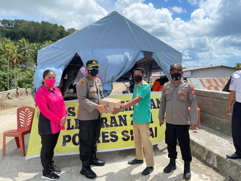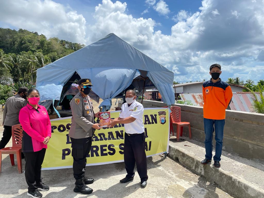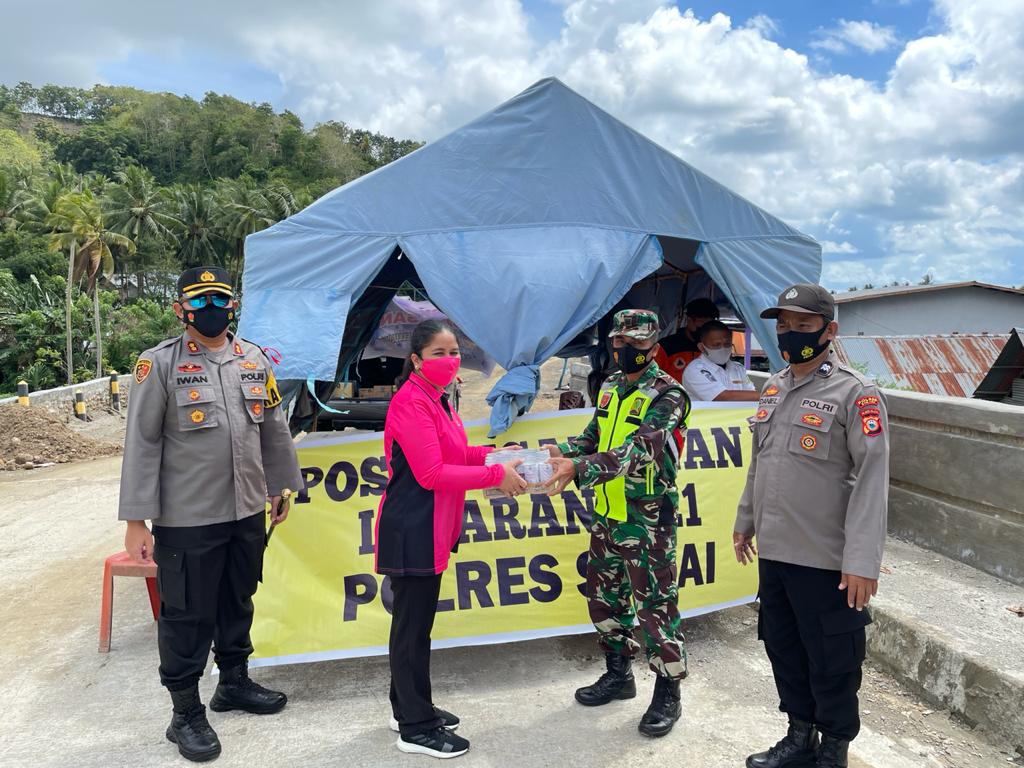 Kapolres Sinjai didampingi Ketua Bhayangkari Cabang Sinjai Ny. Tungga Dewi Iwan, selain untuk mengecek kesiapsiagaan petugas Posko Ops Ketupat, dan juga untuk memastikan proses penyekatan pemudik berjalan lancar, sekaligus untuk memberikan bingkisan kepada petugas posko sebagai bahan buka puasa nantinya.