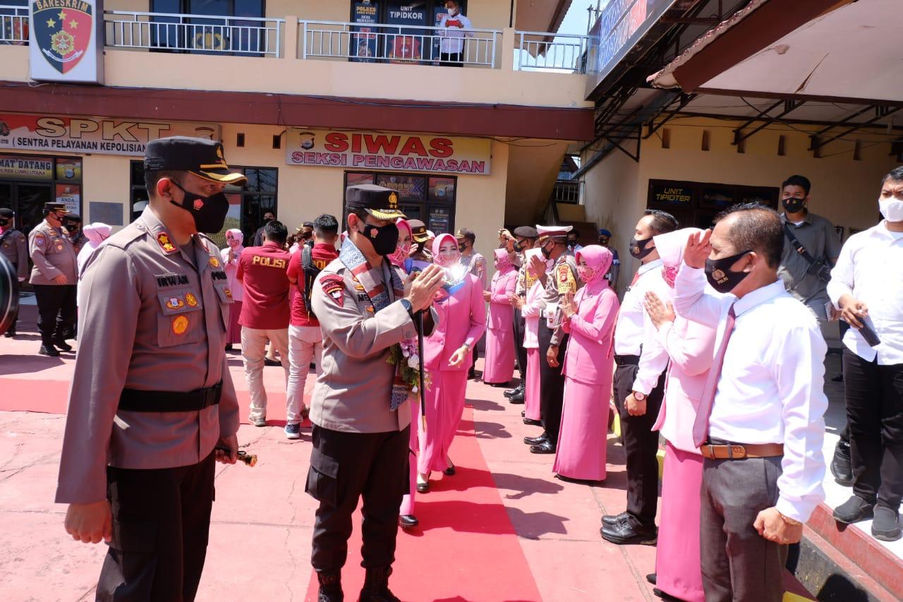 Lutra -Berandankrinews.com. Kapolda Sulsel, Irjen Pol Merdisyam bersama Ketua Bhayangkari Daerah Sulsel Ibu Shanty Merdisyam, melaksanakan kunjungan kerja ke Polres Lutra dan Polres Palopo, Rabu (09/8/6/2021)