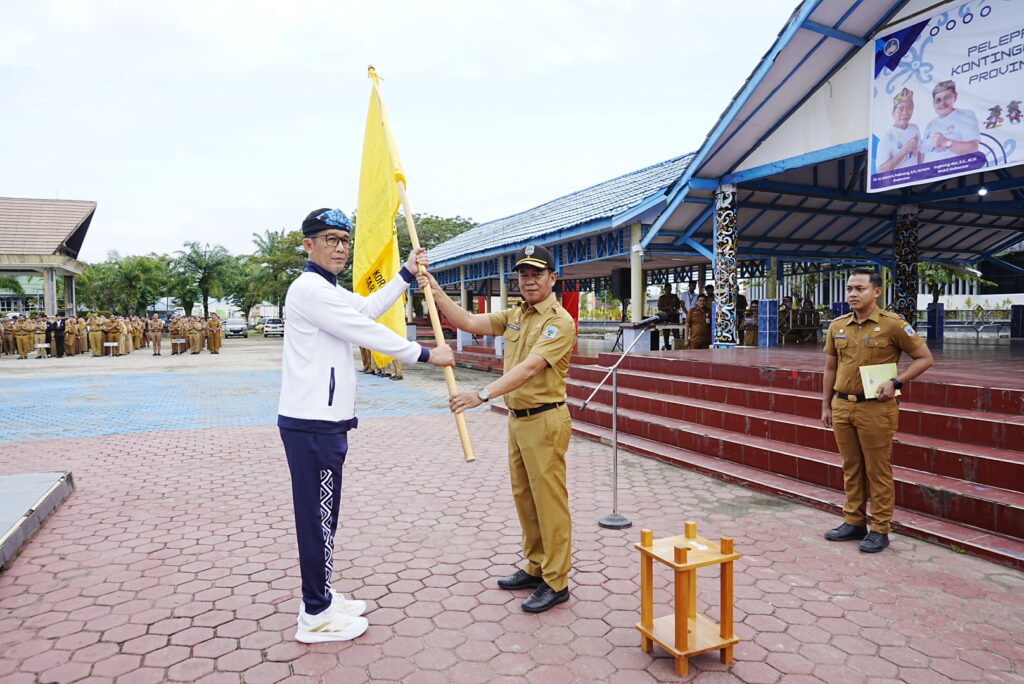 TANJUNG SELOR – Asisten Bidang Pemerintahan dan Kesejahteraan Rakyat H. Datu Iqro Ramadhan, S.Sos., M.Si., memimpin apel pagi gabungan di lingkungan pemerintah provinsi Kalimantan Utara, sekaligus ‘Pelepasan Kontingen Pemerintah Provinsi Kalimantan Utara mengikuti Pekan Olahraga Nasional (PORNAS) ke- 17 Korpri, di Lapangan Agatis, Senin (29/9).