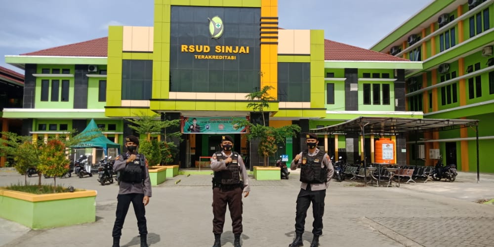 Dengan menggunakan kendaraan dinas, Unit Patroli Sat Sabhara Polres Sinjai, menyambangi RSUD Sinjai, media center isolasi covid- 19 Sinjai guna memastikan situasi aman dan kodusif yang dipimpin oleh Bripka Zulkifli.