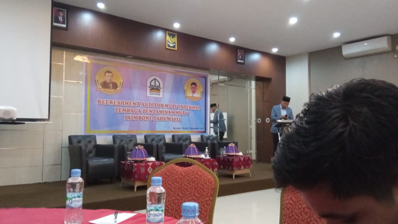 Dalam rangka mengawal penguatan mutu di lingkungan IAIN Bone, Lembaga Penjaminan Mutu (LPM) IAIN Bone mengadakan refreshment auditor mutu internal di Aula Bugis Hotel Novena Watampone, Rabu- Kamis, (16-17/11/2022)