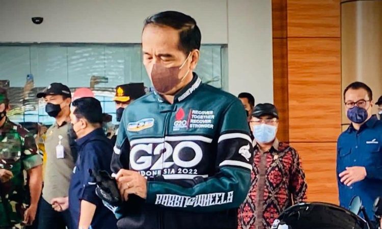Uniknya, kali ini jaket yang dipakai Presiden Jokowi saat berkendara motor adalah jaket ubah suaian (custom) edisi terbatas dengan tema G20 Indonesia. Jaket buatan produsen lokal asal Kota Bandung, Rabbit and Wheels, tersebut berwarna dominan hitam dengan sedikit aksen warna hijau tua di bagian lengan dan bahu.
