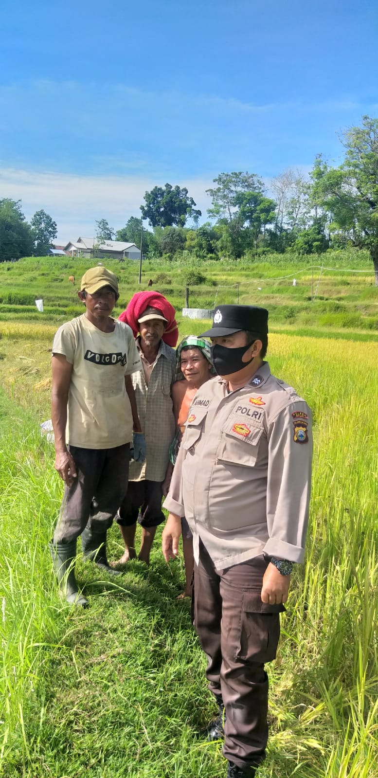 Di sela-sela kegiatan panen padi, tak lupa Bhabinkamtimas Aiptu H. Ahmad Patawari menyampaikan himbauan kamtibmas serta himbauan protokol kesehatan kepada Para petani yang melakukan aktivitas di sawah, selain itu Bhabinkamtimas Aiptu H.Ahmad Patawari juga memberi semangat kepada para petani untuk mewujudkan ketahanan pangan Yang tidak lepas dari jerih payah dari para petani itu sendiri dalam upaya meningkatkan produktivitas dan hasil pertanian.