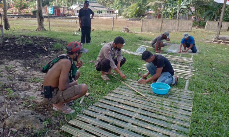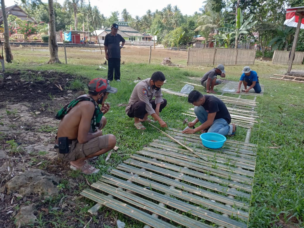 Adapun personil Sat Binmas Polres Bone yang membantu masyarakat membuat pagar yakni Bripka Nur Hidayah.