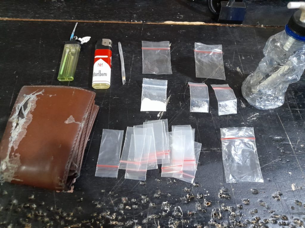 Adapun Barang bukti yang diamankan diantaranya 1 (satu ) Sachet kristal bening ukuran sedang yang tersimpan dalam plastik klip/bening diduga sabu, 2 (dua) sachet kristal bening ukuran kecil yang tersimpan dalam plastik klip/ bening, 1 (satu) buah bong lengkap dengan pipet dan pirex, 1 (satu) buah sendok takar sabu, 16 (enam belas) lembar plastik klip / bening kosong, 1 (satu) buah Sumbu kompor sabu, 2 (dua) buah korek api gas dan 1 (satu) buah dompet warna coklat.