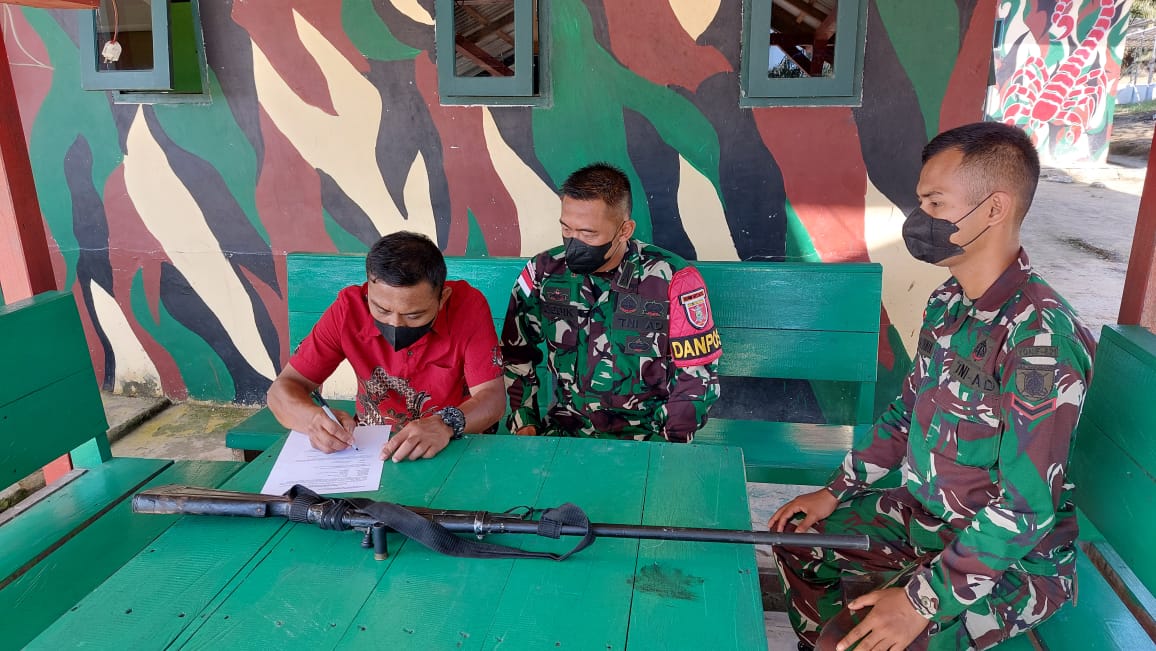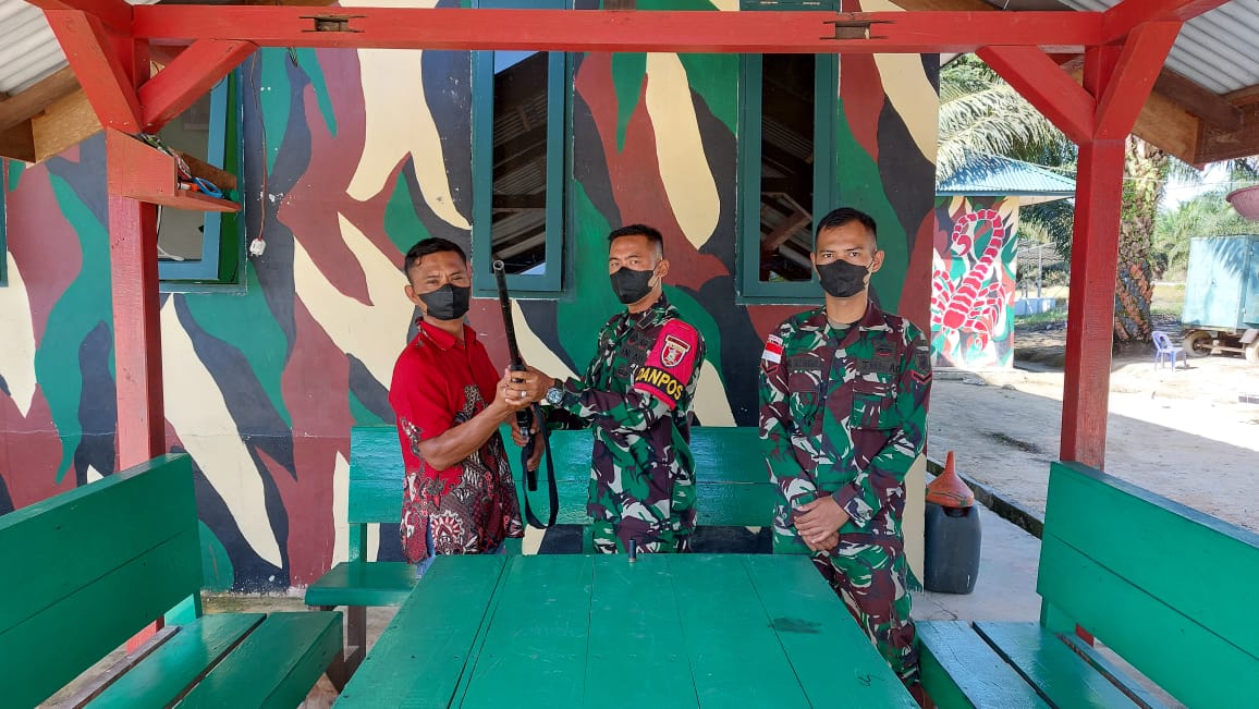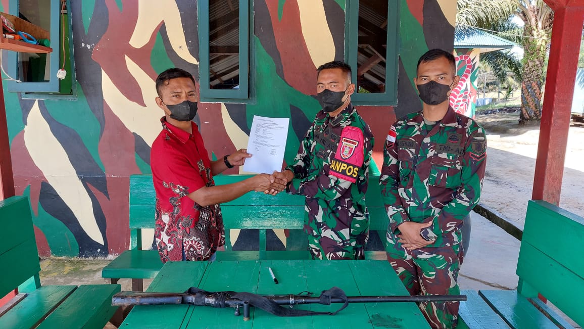 NUNUKAN – Bertempat Di Pos Kanduangan Desa Sekaduyan Taka, Kecamatan Seimanggaris, Kabupaten Nunukan, Provinsi Kalimantan Utara, masyarakat Perbatasan Dengan Sukarela Menyerahkan Senjata Jenis Penabur Kepada Danpos Kanduangan Satgas Pamtas Darat RI-Malaysia Yonif 621/Manuntung, Minggu (09/10/2022)