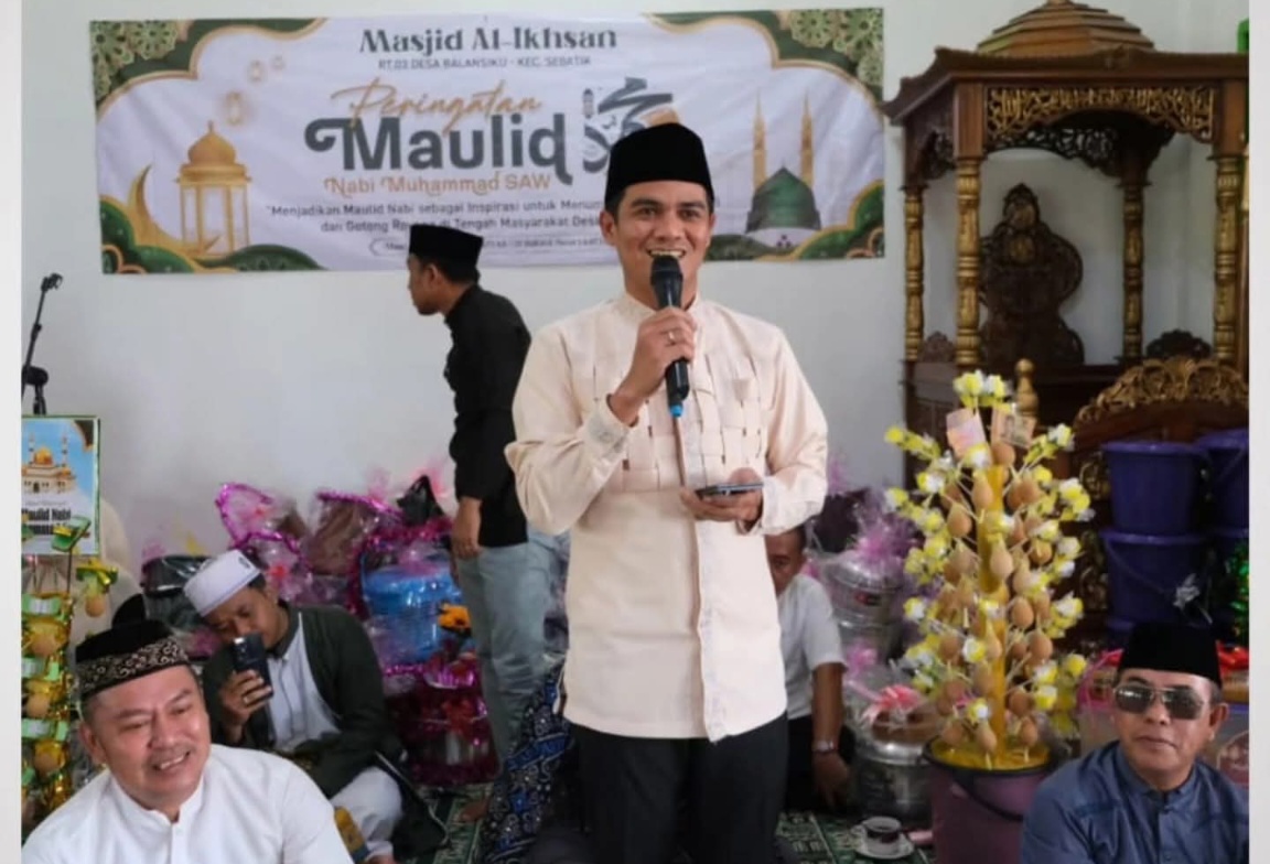 NUNUKAN – Bupati Nunukan, H. Irwan Sabri, SE, menghadiri peringatan Maulid Nabi Muhammad SAW di Masjid Darul Ikhsan, Desa Balansiku, Kecamatan Sebatik, Minggu siang (14/9/2025).
