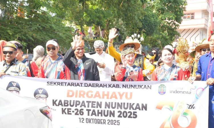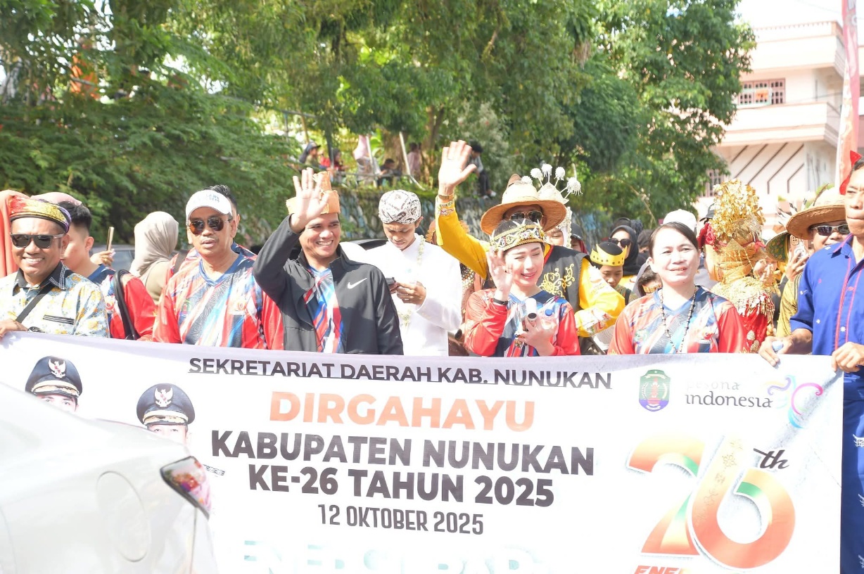 NUNUKAN – Bupati Nunukan H. Irwan Sabri melepas secara resmi para peserta Pawai Budaya Tahun 2025 dalam rangka memperingati HUT Kabupaten Nunukan ke-26 di depan Pelabuhan Tunon Taka Nunukan, Sabtu (11/10).