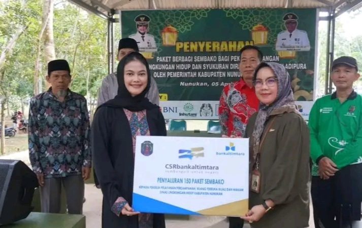 “Ini adalah sebagai bentuk perhatian dari kita pemerintah daerah kepada seluruh pekerja lapangan yang ada di wilayah Kabupaten Nunukan tujuannya agar tetap bersemangat dan tetap bekerja dengan ikhlas seperti biasanya sekaligus juga kita berterima kasih kepada seluruh donatur yang dari perbankan dan beberapa perusahaan serta Baznas yang telah berpartisipasi juga dalam pembagian sembako kali ini”, ungkap Laura.
