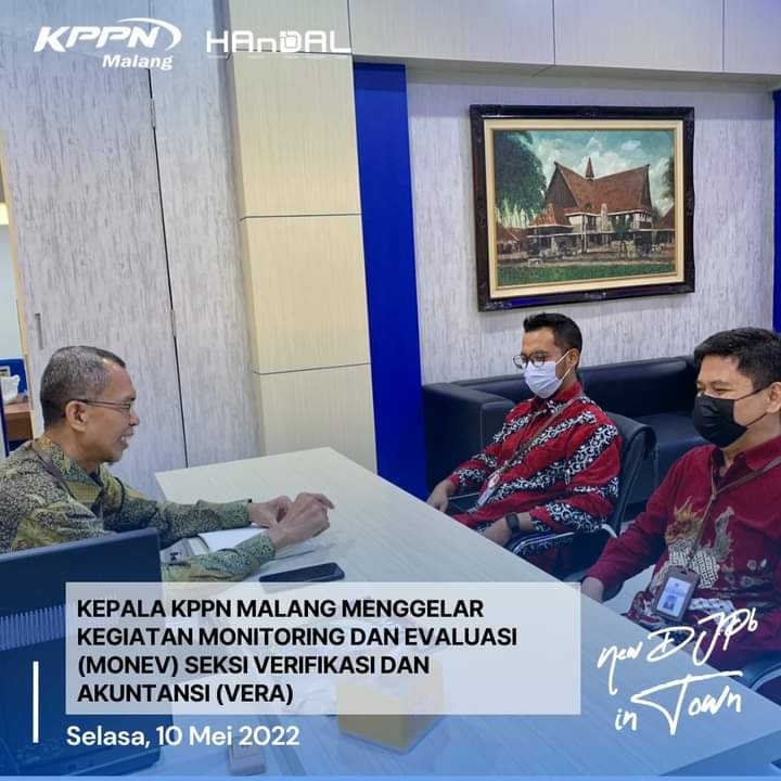 Kepala KPPN Malang, Rintok Juhirman menggelar kegiatan monitoring dan evaluasi (monev) Seksi Verifikasi dan Akuntansi (Vera) bertempat di ruang kerja Kepala KPPN Malang, dengan tetap mematuhi protokol kesehatan, Selasa (10/05/2022).
