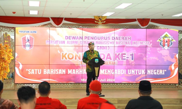 TANJUNG SELOR – Asisten bidang Administrasi Umum Setprov Kaltara, Pollymaart Sijabat, S.KM, M.AP membuka Konferensi Daerah (Konferda) Dewan Pengurus Daerah Persatuan Alumni Gerakan Mahasiswa Nasional Indonesia (GMNI) Kaltara, Ahad (21/7).