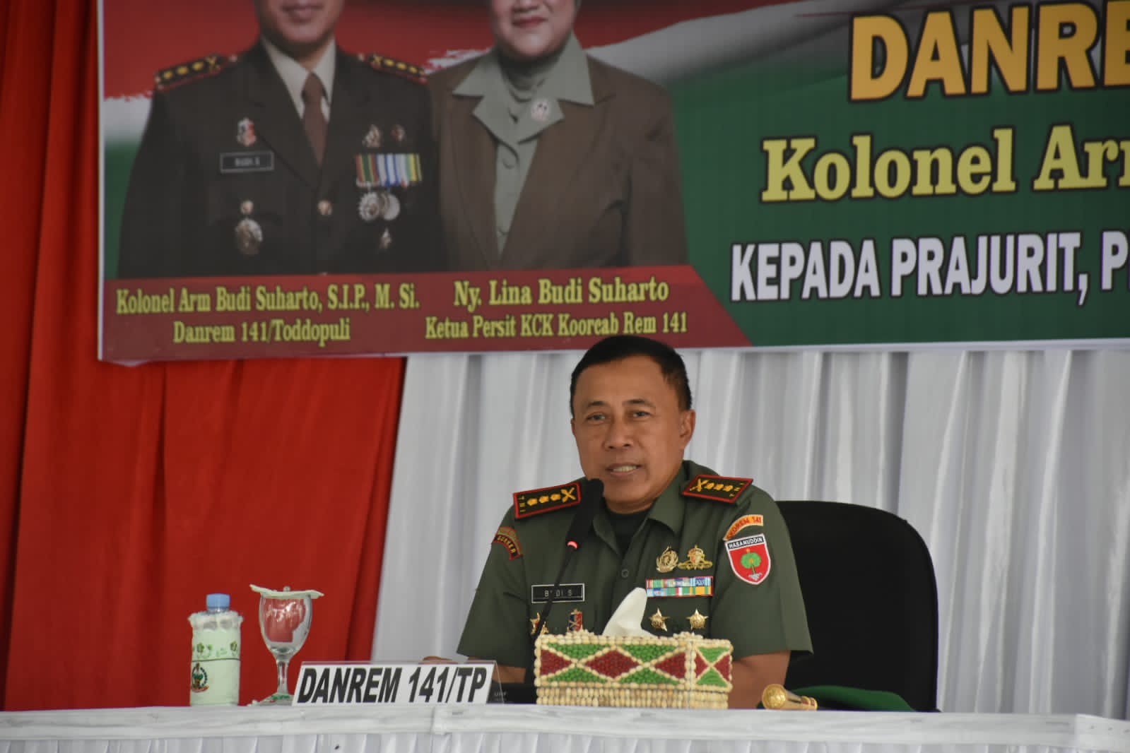 Danrem 141/Toddopuli dalam arahannya kepada seluruh Personil, PNS serta ibu Persit mengatakan bahwa Satuan Korem 141/Tp