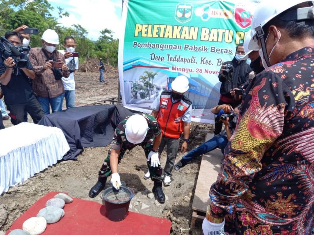 Kab. Luwu -Berandankrinews.com. Pangdam XIV/Hsn Mayjen TNI Muhammad Syafei Kasno, S.H. Hadiri peletakan batu pertama pembangunan pabrik beras PT. Jas Mulia Di wilayah Korem 141/Toddopuli bertempat di dusun Bosa Desa Toddopuli Kec. Bua Kab. Luwu dengan disambut tarian adat Kab. Luwu. Minggu 28/11/2021.