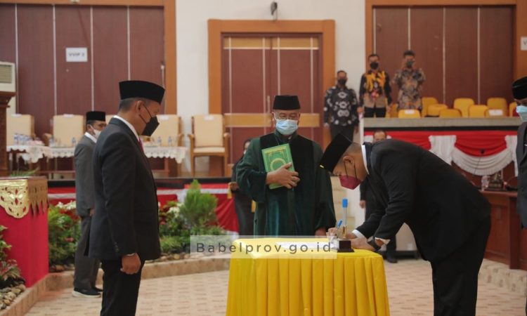 PANGKALPINANG, BerandaNKRInews.com –Wakil Gubernur Kepulauan Bangka Belitung (Babel) Abdul Fatah menghadiri Rapat Paripurna Pelantikan Pengganti Antar Waktu (PAW) Anggota DPRD Babel Sisa Masa Jabatan 2019 – 2024 yang digelar Senin (20/12). Dalam rapat tersebut dilakukan pengucapan sumpah jabatan yang dipimpin oleh Ketua DPRD Babel Herman Suhadi.