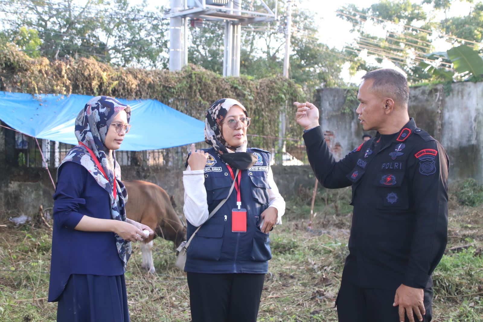 “Hari ini kita lakukan pemeriksaan hewan kurban sebelum dipotong yang meliputi pemeriksaan fisik dari tanduk, telinga, cuping hidung hingga bagian testisnya untuk memastikan hewan tersebut sehat, tidak cacat dan layak untuk dijadikan hewan kurban sesuai syariat Islam,” tutur Drh. Anna.