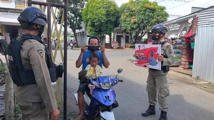 Tidak hanya memberi imbauan kepada masyarakat, patroli KRYD Batalyon C Pelopor juga membagikan masker gratis kepada masyarakat yang kedapatan tidak mengenakan masker saat berada di tempat umum.