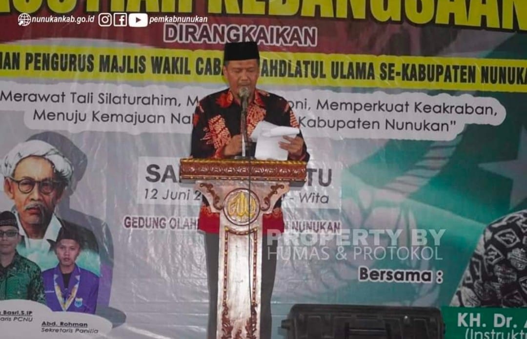 Di akhir sambutan Bupati Nunukan mengucapkan selamat atas pelantikan pengurus majelis wakil cabang NU se Kabupaten Nunukan.