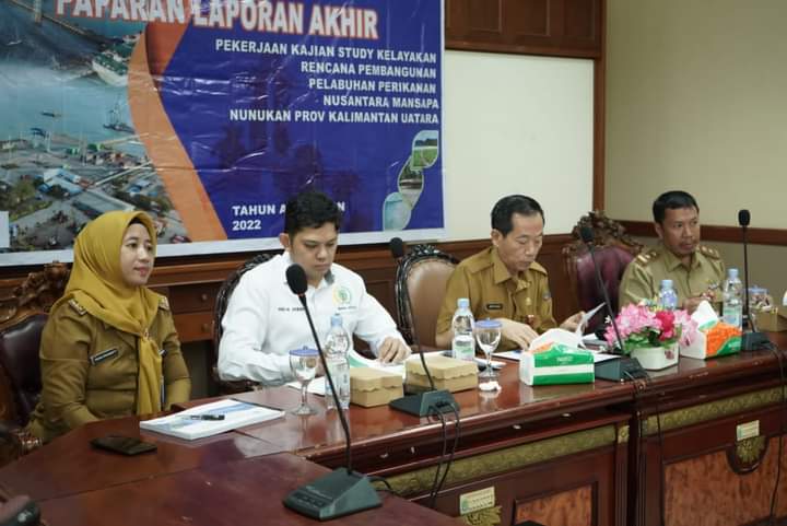 Pada Selasa (01/11) Sekretaris Daerah Kabupaten Nunukan Serfianus SIP MSi menghadiri Paparan Laporan Akhir Pekerjaan Kajian Study Kelayakan Rencana Pembangunan Pelabuhan Perikanan Nusantara Mansapa Nunukan Provinsi Kalimantan Utara Tahun Anggaran 2022 yang dilaksanakan di Ruang Pertemuan Lantai I Kantor Bupati Kabupaten Nunukan.