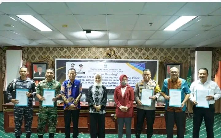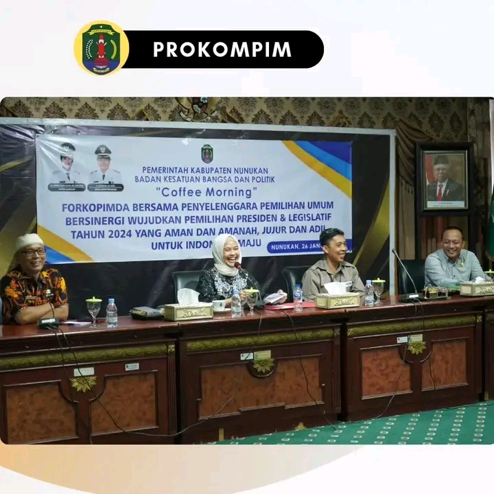 NUNUKAN – Pemerintah Daerah Kabupaten Nunukan melalui Badan Kesatuan Bangsa dan Politik (Kesbangpol) menggelar Coffee Morning bersama dengan Badan Pengawas Pemilu (Bawaslu), Komisi Pemilihan Umum (KPU), Forkopimda dan stakeholder terkait, di Ruang Pertemuan Lantai 4 Kantor Bupati Nunukan, Jumat (26/1/2024).