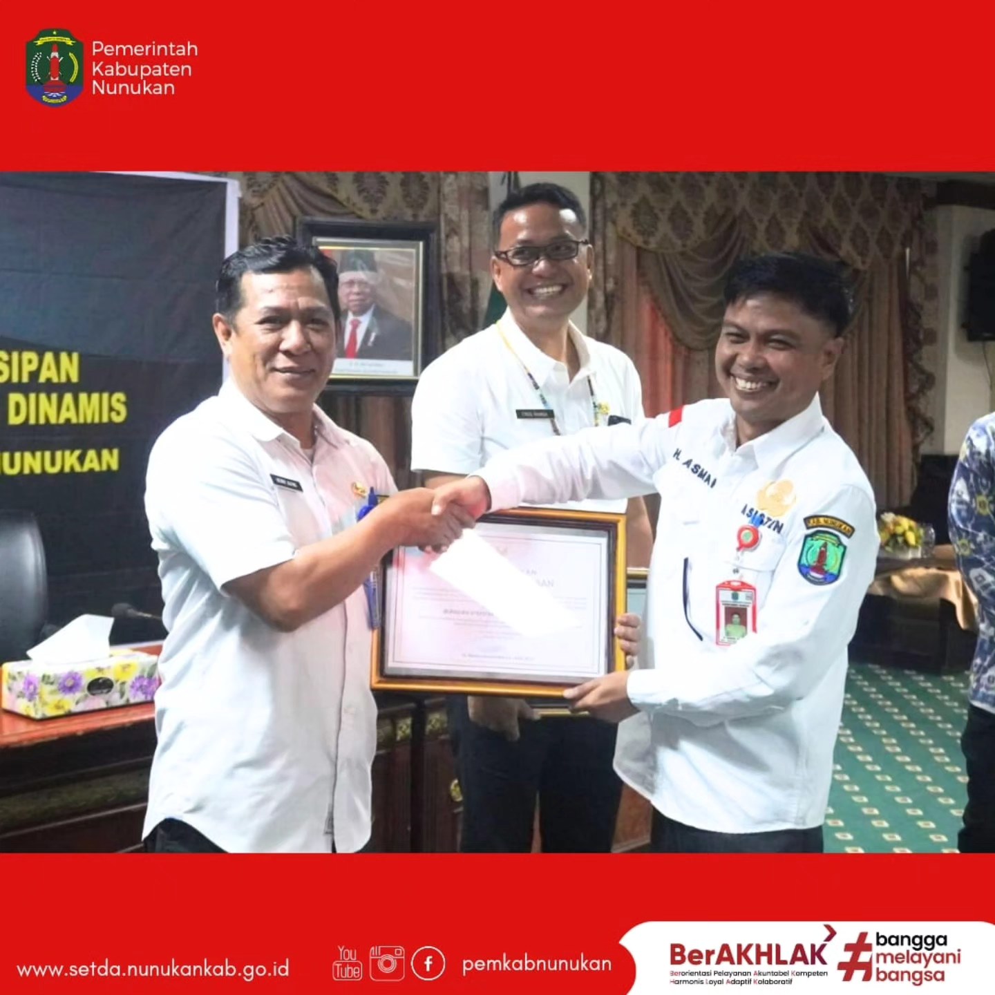 Setelah membuka secara resmi, H. Asmar juga menyerahkan Piagam penghargaan atas konsisten sebagai penyelenggaraan dan responden terbanyak menggunakan aplikasi srikandi di lingkungan pemerintahan kab. Nunukan.