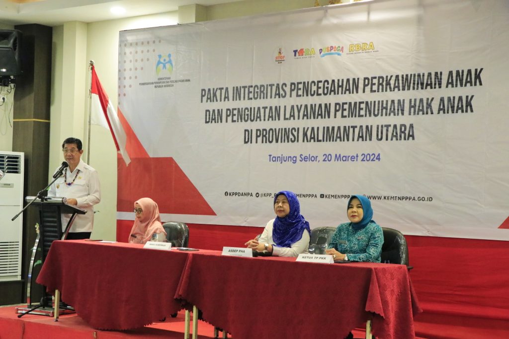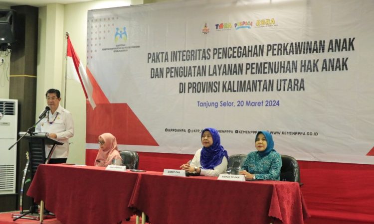 TANJUNG SELOR – Penandatanganan pakta integritas sebagai wujud upaya dan komitmen Pemerintah dalam mengurangi tingkat perkawinan dini anak serta bentuk keseriusan dalam melindungi hak anak di provinsi Kalimantan Utara (Kaltara).