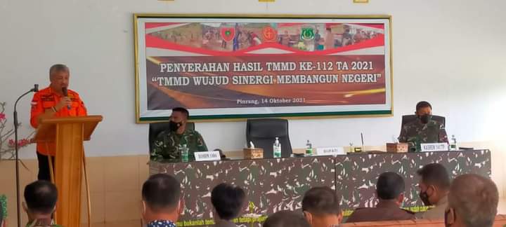 Pinrang -berandankrinews.co. Pelaksanaan acara penutupan TMMD Ke-112 Ta. 2021 Kodim 1404/Pinrang “TMMD Wujud Sinergi Membangun Negeri” dipimpin oleh Danrem 141/Tp. Brigjen TNI Djashar Djamil. SE., M.M. yang diwakili oleh Kasrem 141/Toddopuli. Kolonel Arh Elphis Rudy, S.E.,M.M.,M.Sc.,M.S.S. Bertempat di aula Makodim 1404/Pinrang. Jln Andi Makkulau No. 01 Kel. Laleng Bata Kec. Paleteang Kab. Pinrang. Kamis 14/10/2021