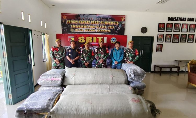 NUNUKAN – Satuan Tugas Pengamanan Perbatasan (Satgas Pamtas) RI-Malaysia Yon Arhanud 8/Marawaca Bhuana Cakti (MBC) melalui Pos Dalduk Aji Kuning bersama Satgas BAIS dan Bea Cukai Nunukan berhasil menggagalkan penyelundupan karpet ilegal dari Malaysia di Desa Aji Kuning, Kecamatan Sebatik Tengah (12/01/2024).