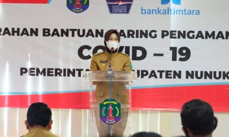 Bupati Nunukan Hj.Asmin Luara juga menyampaikan bahwa kami dari pemerintah daerah tidak tinggal diam dengan keadaan dan apa yang di rasakan oleh masyrakat sehingga melalui dana APBD, meskipun sangat terbatas namun kami mewajibkan agar bagaimana dari APBD kita ini mengalokasikan bantuan kepada masyrakat kita yang terdampak Covid-19 dan yang tidak mampu.