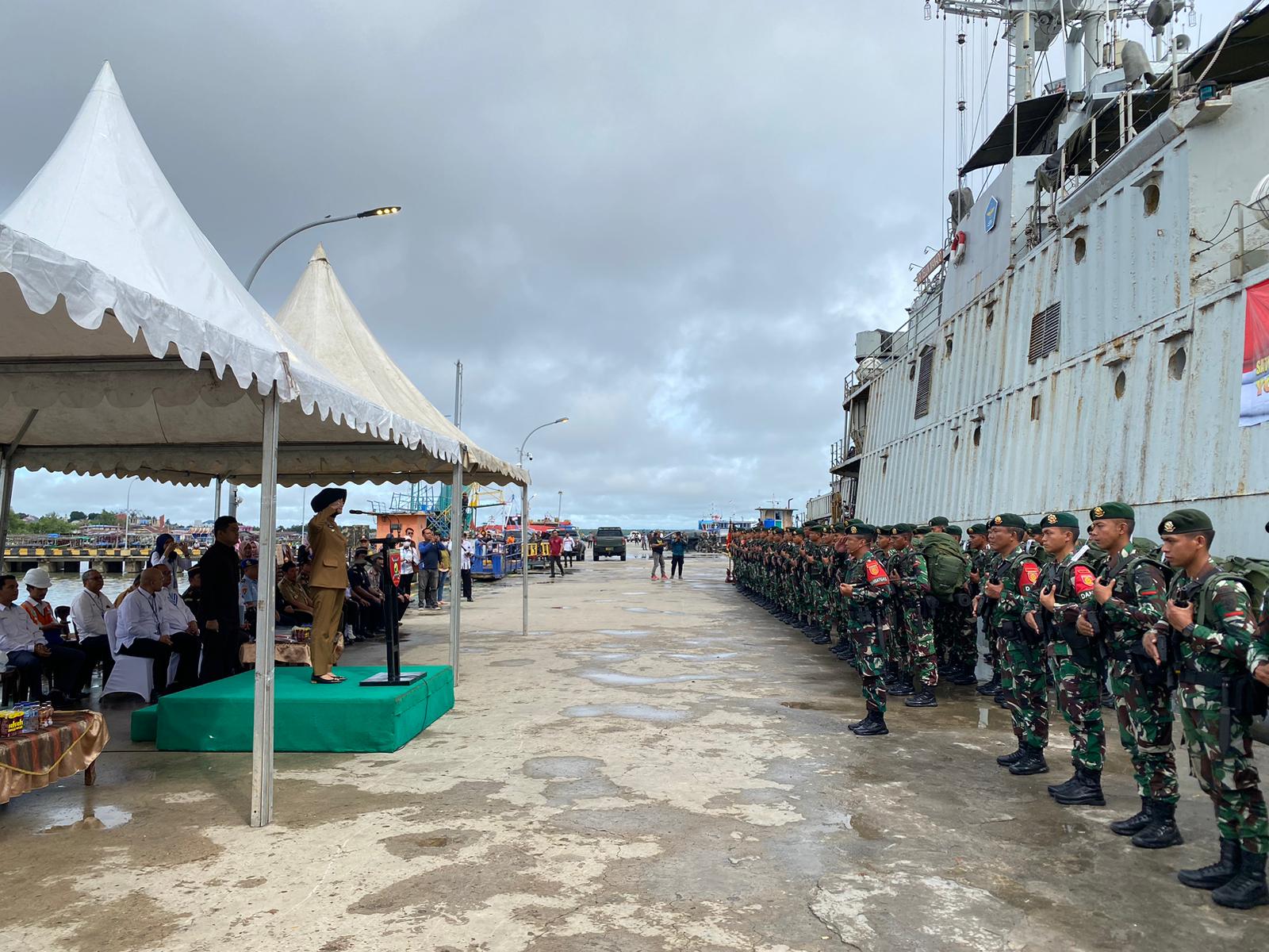 NUNUKAN – Bupati Nunukan, Asmin Laura Hafid menyambut Satuan Tugas Pengamanan Perbatasan (Satgas Pamtas) RI-Malaysia Yonarmed 11/Guntur Geni (GG)/22 Kostrad di Pelabuhan Tunon Taka, Senin (26/08/2024) pagi.