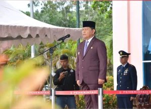 Wakil Bupati Nunukan H. Hanafiah bertindak selaku Inspektur Upacara membacakan Amanat Presiden Republik Indonesia Prabowo Subianto.