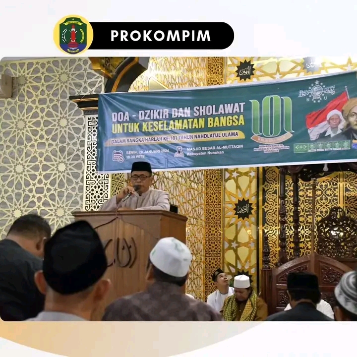 NUNUKAN- Mewakili Bupati Nunukan, Kepala Dinas Pendidikan Ahmad menghadiri Acara Isra Mi’raj yang dirangkaikan dengan Doa – Dzikir dan Sholawat dalam rangka Hari Ulang Tahun Nadhatul Ulama yang ke 101 Tahun 26 Rajab 1344 – 1445 H. Kegiatan ini dilaksanakan di Mesjid Besar Al Muttaqin Nunukan, Senin 29 Januari 2024.