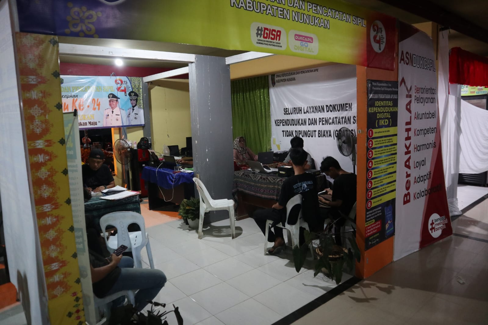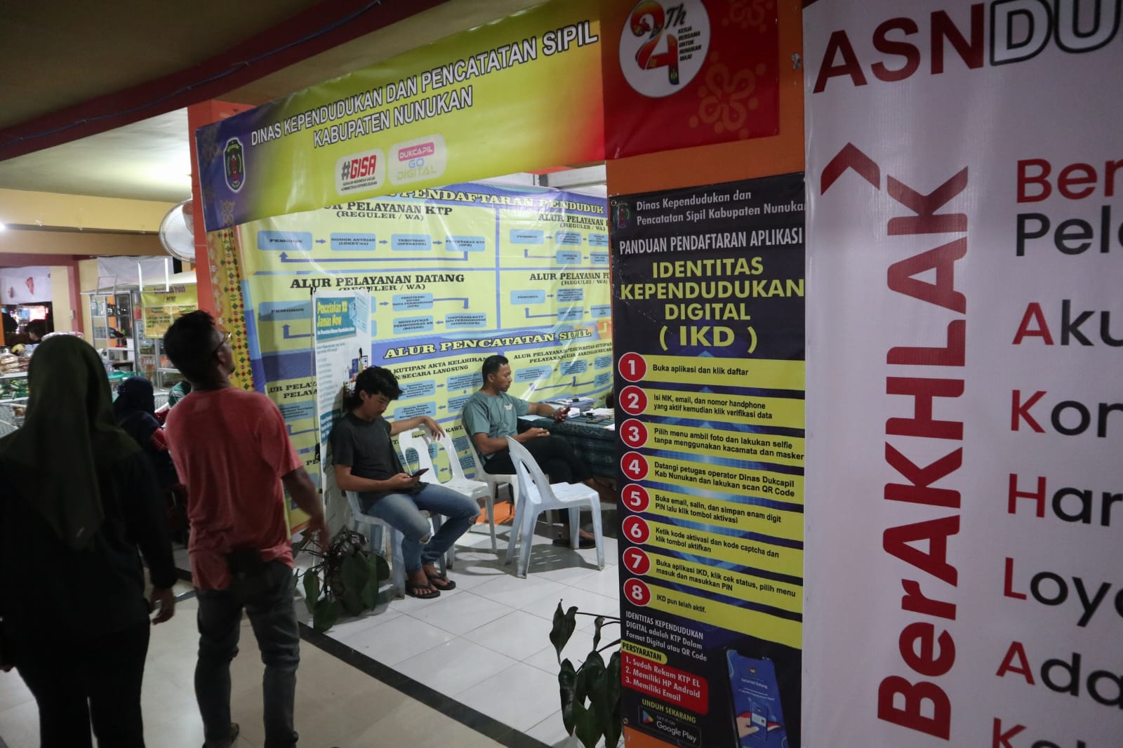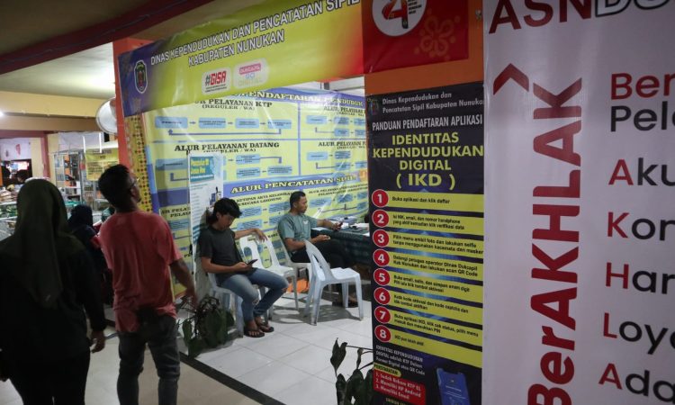NUNUKAN – Dinas Kependudukan dan Catatan Sipil (Disdukcapil) buka dan memberikan pelayanan hingga malam hari untuk masyarakat pada Pekan Pelayanan Publik di Pasar Rakyat Sejahtera (Paras) Perbatasan dalam rangka peringatan hari ulang tahun (HUT) Kabupaten Nunukan ke-24.