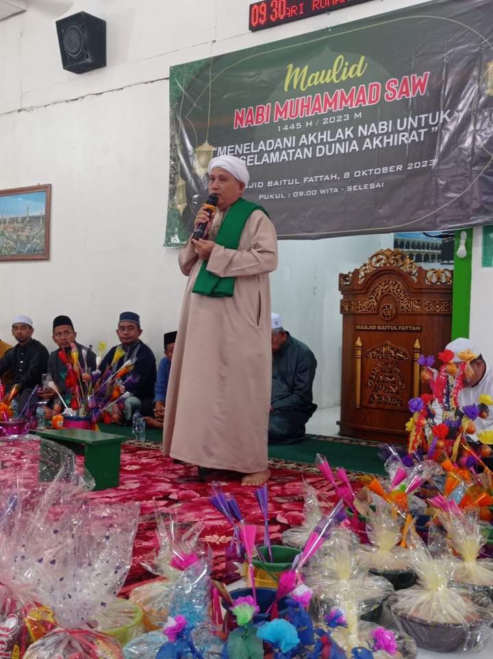 NUNUKAN – Mewakili Bupati Nunukan, Kabag Kesra Setda Kabupaten Nunukan H. Khairil, S. Si., APt hadiri acara Maulid Nabi Muhammad SAW di Masjid Baitul Fattah Jalan Ujang Dewa Nunukan Selatan, Minggu (08/10/23). Adapun sebagai Penceramah dalam acara tersebut yaitu Ustadz H. Ridwan.