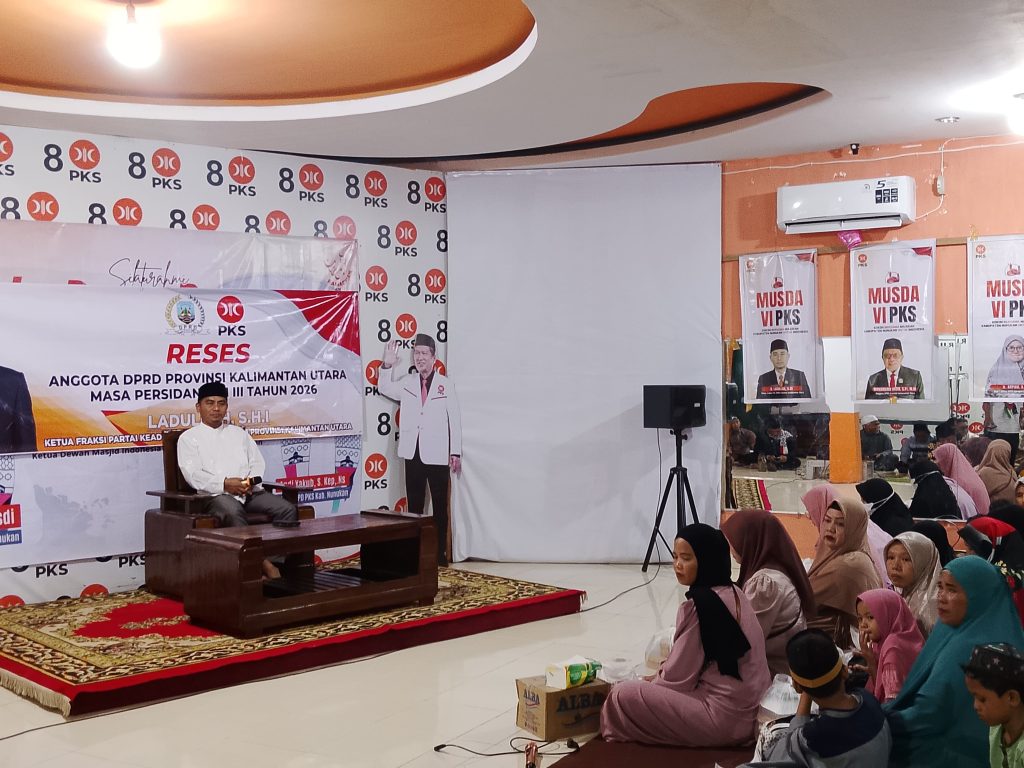 NUNUKAN-Anggota DPRD Kalimantan Utara dari fraksi Partai Keadilan Sejahtera (PKS) H.Ladullah kembali gelar reses di titik ke 5. Kegiatan yang bertujuan menyerap langsung suara aspirasi masyarakat Nunukan yang akan di jadikan bahan dalam penyusunan kebijakan pembangunan tingkat provinsi. Kegiatan tersebut digelar pada Minggu (22/02/2026) sore bertempat di Kantor DPD PKS Nunukan.