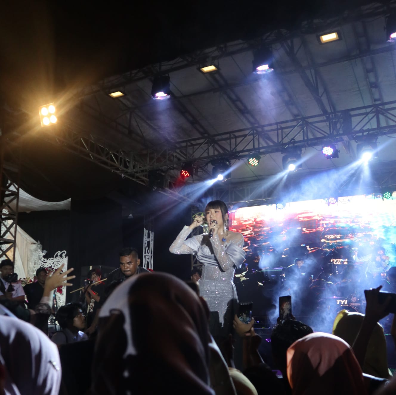 Terlihat tamu undangan sangat antusias dengan memadati depan panggung utama dan ikut bernyanyi bersama artis yang kerap disapa Ghea.