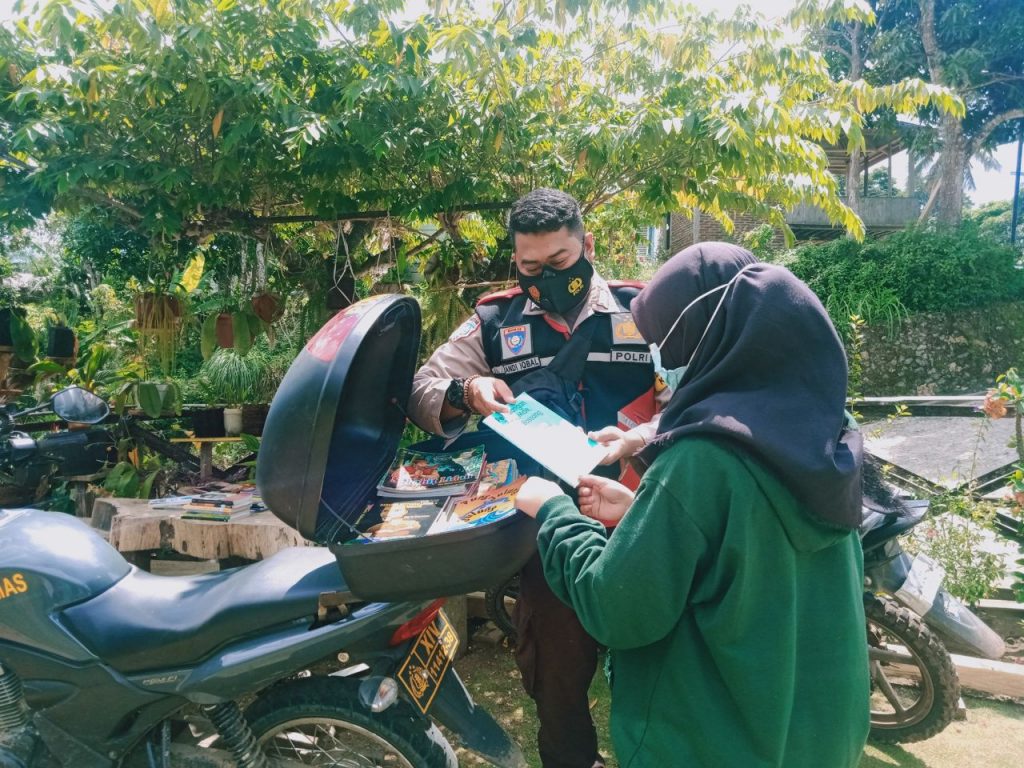 Bhabinkamtibmas Bripka Andi Ikbal Rosani Saat ditemui usai kegiatan mengatakan bahwa pada kesempatan itu Selain membawa Buku melalui perpustakaan kelilingnya.