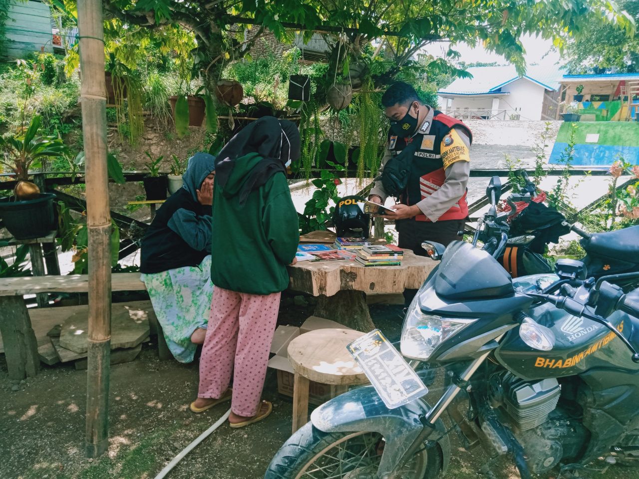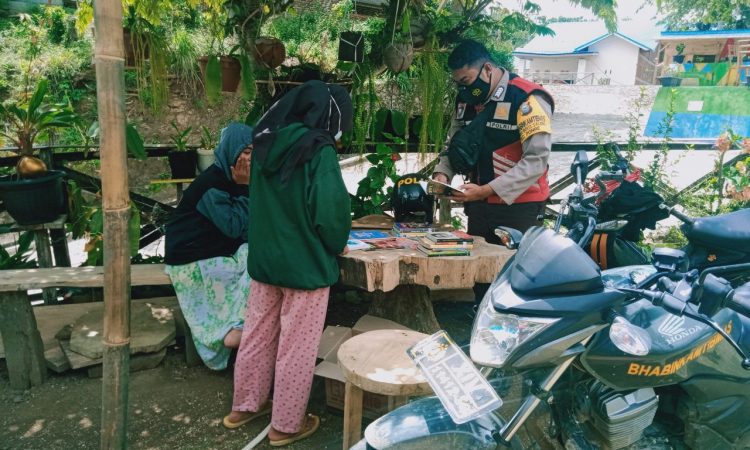 Bhabinkamtibmas Bripka Andi Ikbal Rosani Saat ditemui usai kegiatan mengatakan bahwa pada kesempatan itu Selain membawa Buku melalui perpustakaan kelilingnya.
