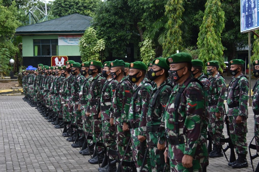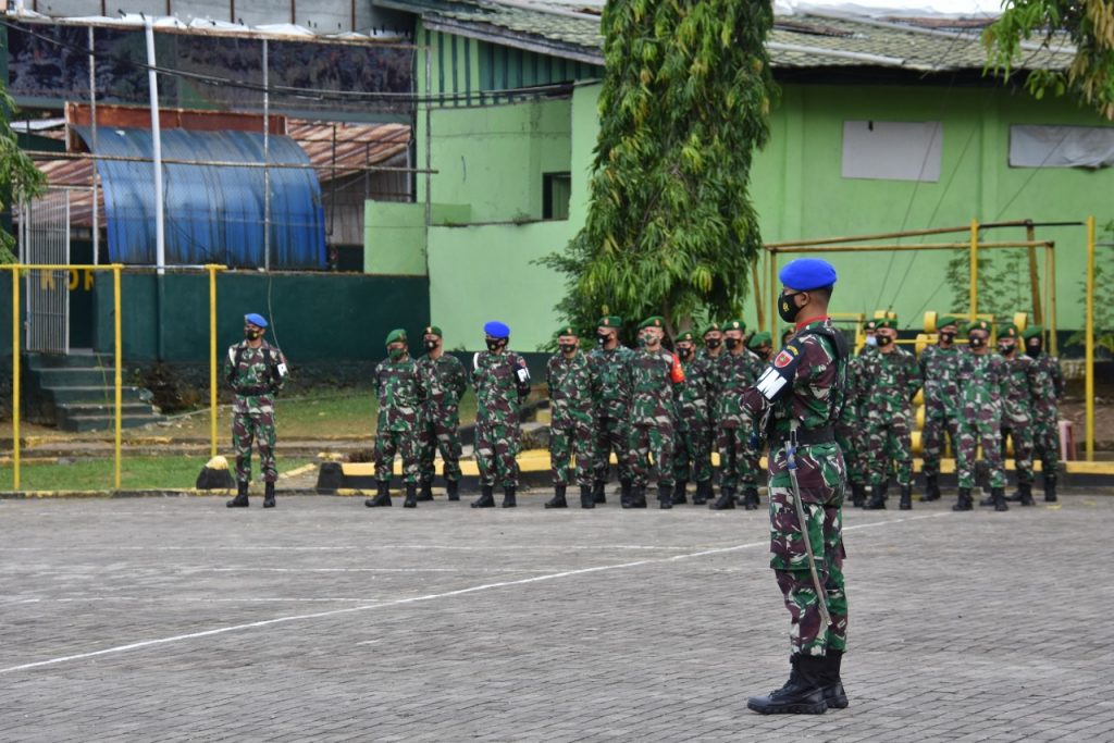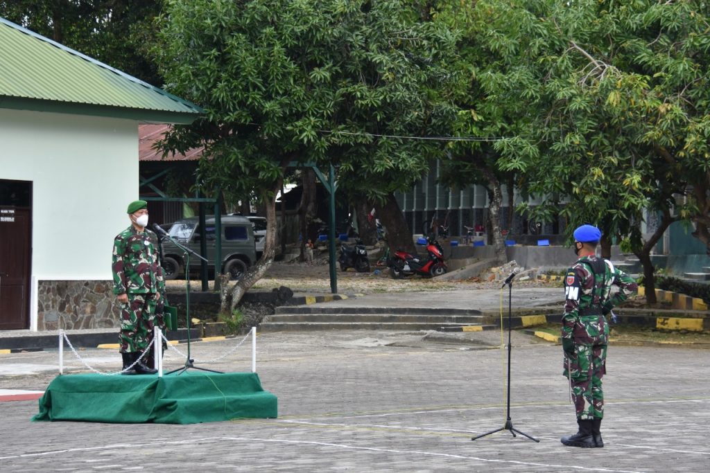 Watampone-Berandankrinews.com Personel Korem 141/Toddopuli Balakrem Beserta Pns Korem melaksanakan Upacara Bendera dengan tetap mengikuti proyokol kesehatan bertempat di lapangan Apel Makorem 141/Toddopuli Jl. Jendral sudirman No. 9 Watampone Dengan Irup Kasi Pers Kasrem 141/Toddopuli Letkol Arm Yani Ari Sasongko(18).