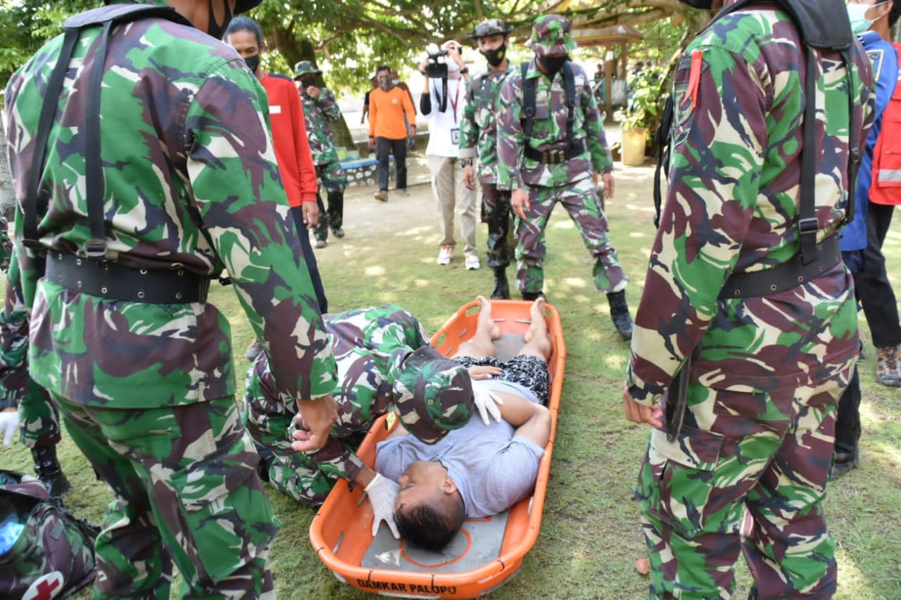 Kasrem 141/Tp Kolonel Arh Elphis Rudy, S.E.,M.M.,M.Sc., M.S.S., selaku Komandan Latihan (Danlat) memantau langsung jalannya latihan dengan melibatkan seluruh stake holder terkait baik unsur TNI, BMKG, BNPB, Basarnas,  Tagana, Satpol PP dan komponen masyarakat lainnya. “Ucapnya.