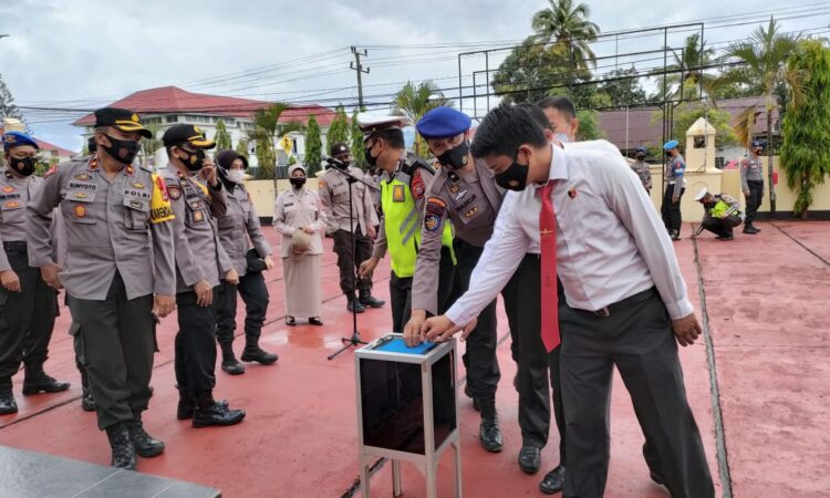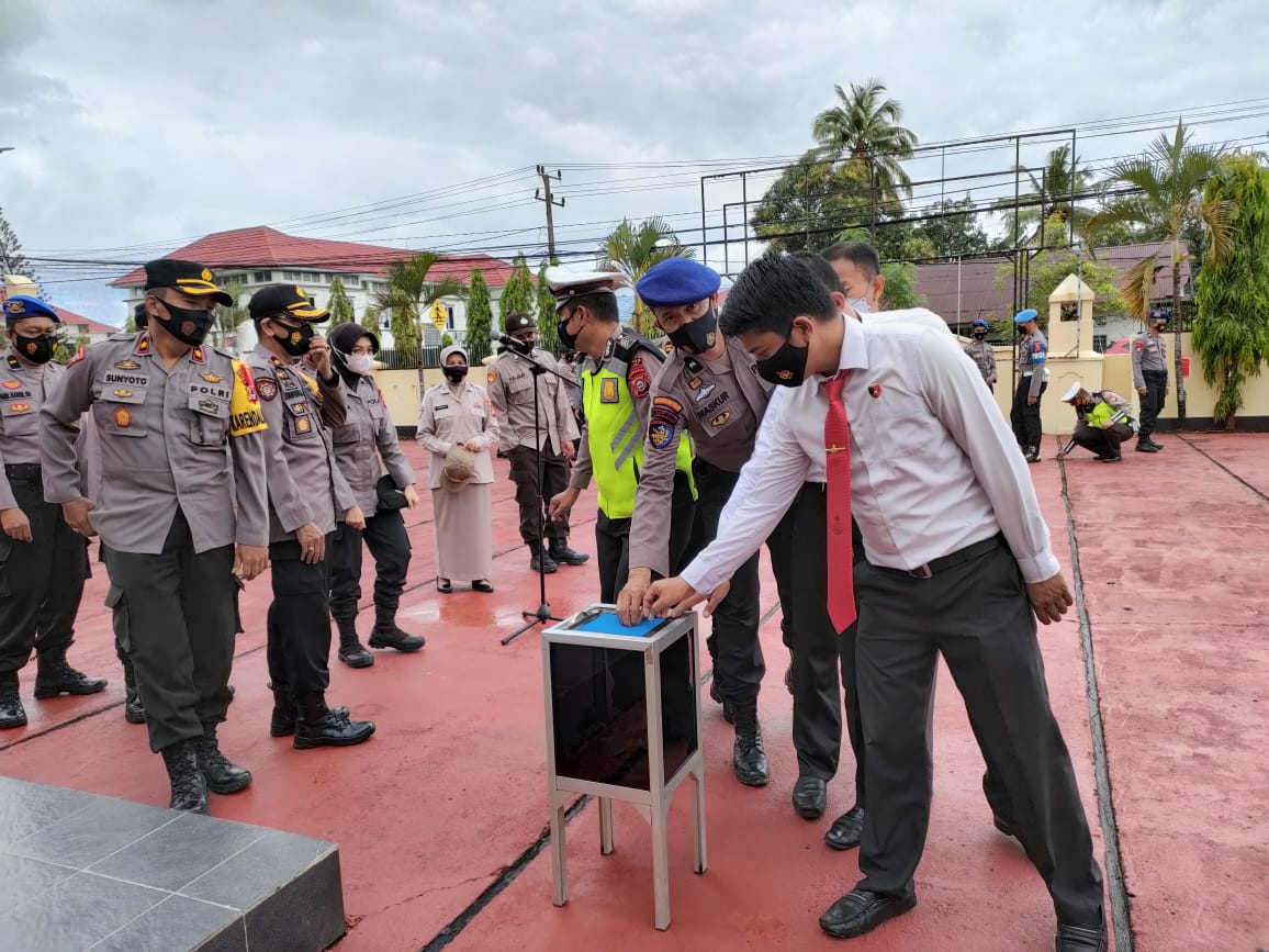Selesai menerima arahan pada pelaksanaan apel jam pimpinan secara bergantian mulai dari barisan Pejabat utama Polres Sinjai maju untuk menyisihkan sedikit rejekinya dikotak amal.