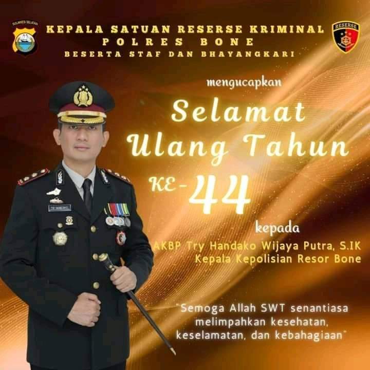 Kapolres Bone AKBP Try Handako Wijaya Putra,S.IK sangat bersyukur dan bangga atas keberhasilan personelnya yang masuk harapan 1 dan 2 dari 10 peserta yang berhasil grand final Audsi Da’i Polisi 2021.