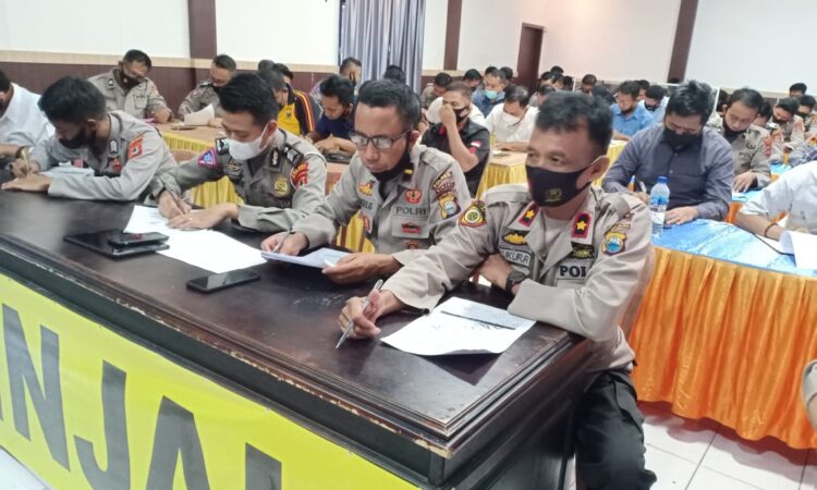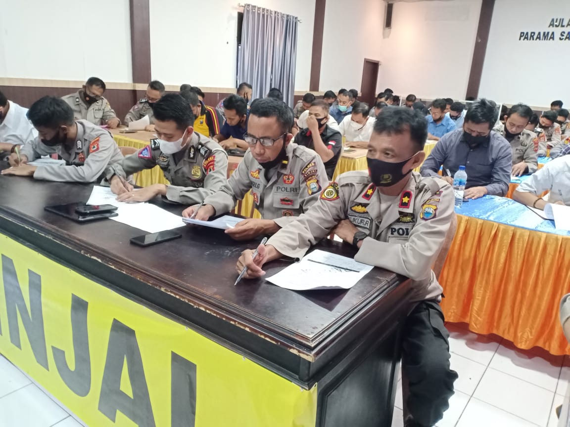 Sinjai – Berandankrinews.com. Kepolisian Resor Sinjai menggelar tes psikologi dalam rangka Pinjam Pakai Senpi Polri, dan Psikologi Berkala personel Polres Sinjai, bertempat diaula Parama Satwika Mapolres Sinjai, Selasa pagi (15/6/2021).