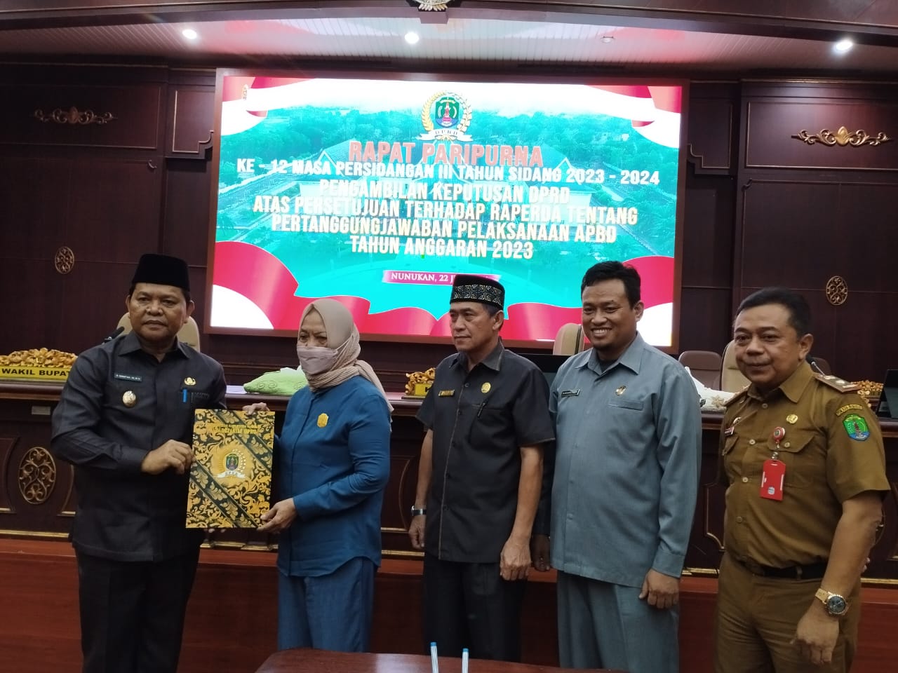 Setelah beberapa kali menggelar rapat paripurna akhirnya DPRD Nunukan menyetujui Raperda pertanggungjawaban APBD TA.2023 setelah adanya laporan hasil pemeriksaan Badan pemeriksa keuangan (BPK).