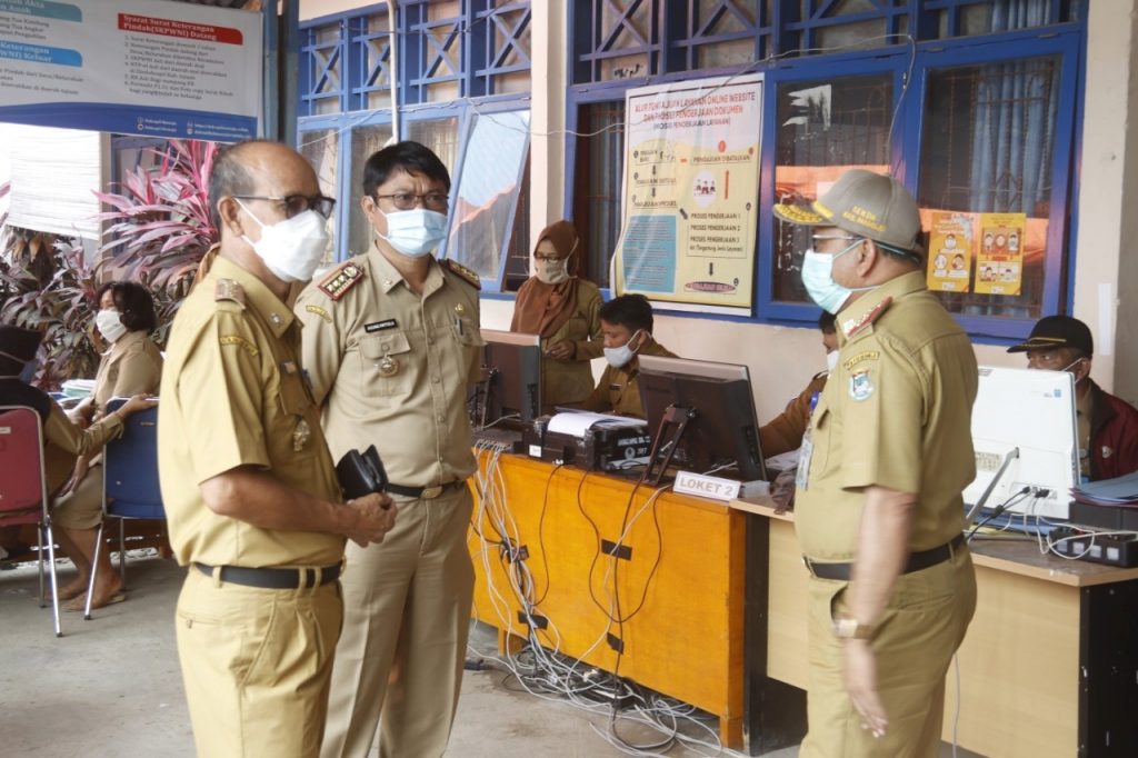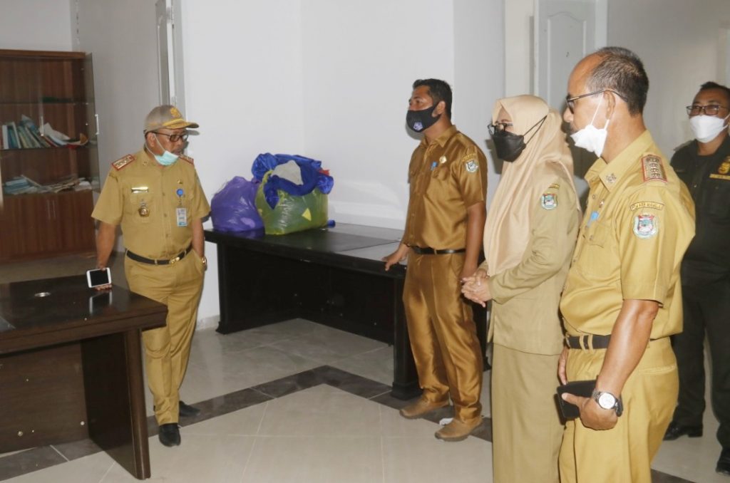 Masih dalam masa transisi pemulihan pasca gempa 6,2 SR, Senin (22/2/2021) Plh Bupati Mamuju, H. Suaib, S.Sos., MM. mengunjungi sejumlah kantor dinas untuk memastikan pelayanan publik tetap dilakukan. Bertolak dari Kantor Bupati Mamuju, Suaib berkunjung ke tiga titik, diawali dengan menyaksikan proses pelayanan pengurusan dokumen di Dinas Kependudukan & Pencatatan Sipil (Disduk Capil) yang dilakukan di teras kantor,