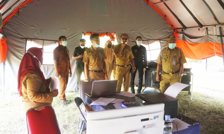Masih dalam masa transisi pemulihan pasca gempa 6,2 SR, Senin (22/2/2021) Plh Bupati Mamuju, H. Suaib, S.Sos., MM. mengunjungi sejumlah kantor dinas untuk memastikan pelayanan publik tetap dilakukan. Bertolak dari Kantor Bupati Mamuju, Suaib berkunjung ke tiga titik, diawali dengan menyaksikan proses pelayanan pengurusan dokumen di Dinas Kependudukan & Pencatatan Sipil (Disduk Capil) yang dilakukan di teras kantor,
